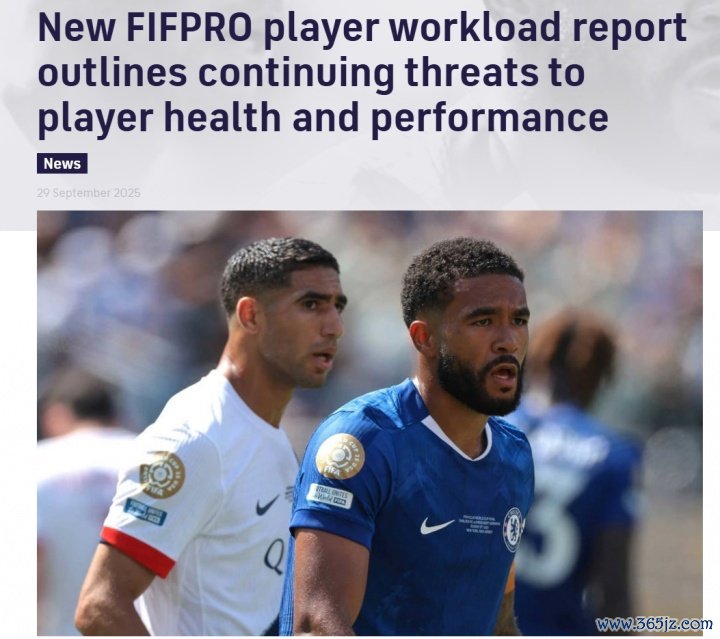 10月01日讯 外洋奇迹足球通晓员长入会(FIFPro)发布了一份证实《外洋奇迹足球通晓员长入会球职责任负荷监测证实》,从多个维度暗意球职责任超负荷。
