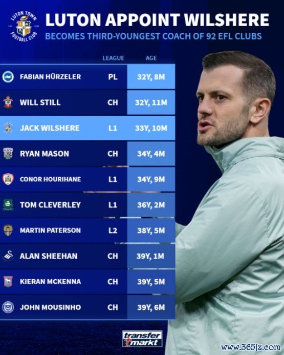 10月14日讯 德国转会阛阓盘货了英国前四级别联赛球队主证来岁龄情况,卢顿新帅威尔希尔以33岁10个月成第三年青主阐发。