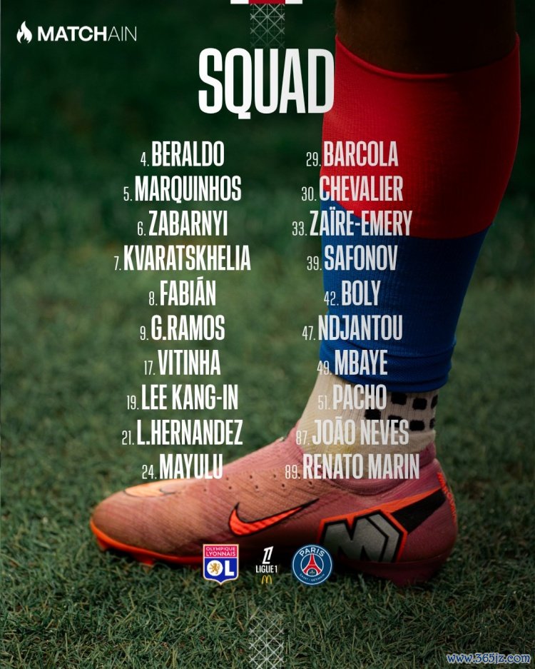 11月9日讯 北京技能未来凌晨,巴黎将在法甲第12轮比赛中客场对阵里昂,巴黎公布了此役的球员名单,阿什拉夫、登贝莱、努诺-门德斯、杜埃缺席。
