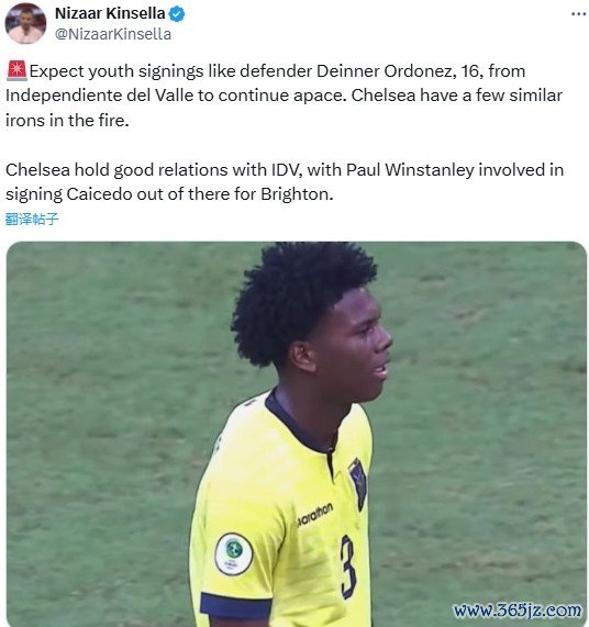 11月15日讯 据切尔西跟队记者Nizaar Kinsella报说念,切尔西在引援上赓续对准后生才俊,蓝军如故预签厄瓜多尔16岁后卫奥多涅斯,蓝军还有一些访佛的转会正在进行之中。