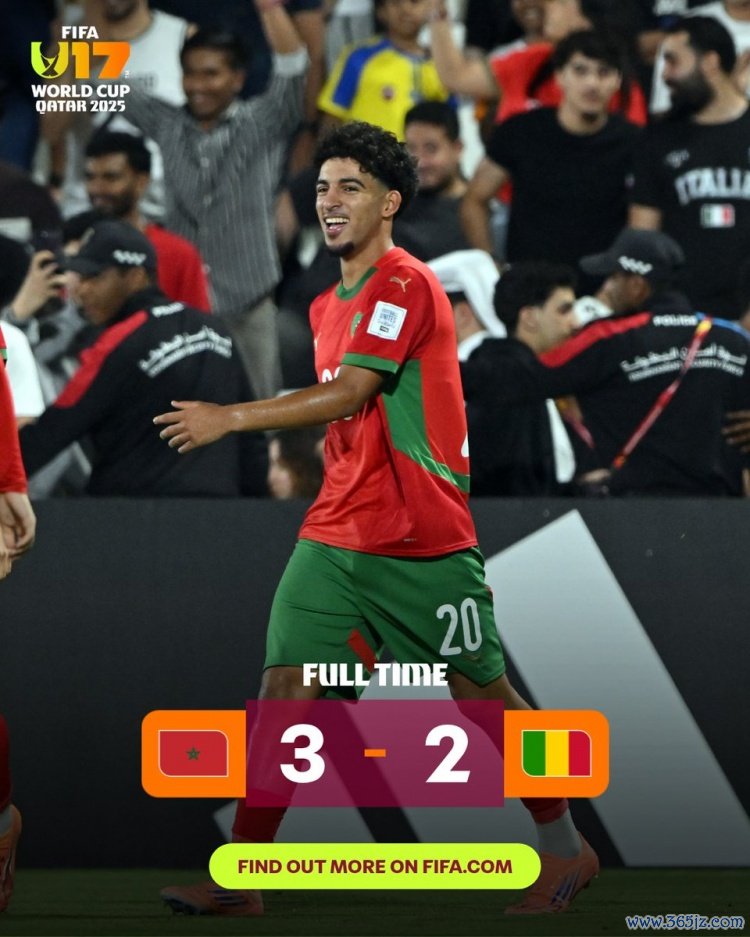 摩洛哥U17球员Ismail El Aoud而后连进两球,将场上比分改写为3-1,马里U17球员Tièmoko Berthe鄙人半场补时阶段打进1球,场上比分最终定格为3-2。