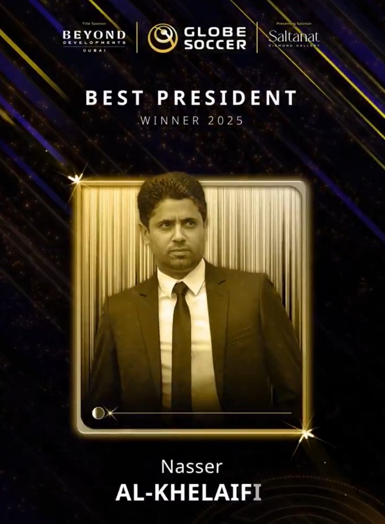 12月29日讯 环足奖授奖庆典,巴黎主席纳赛尔当选2025年度最好主席。