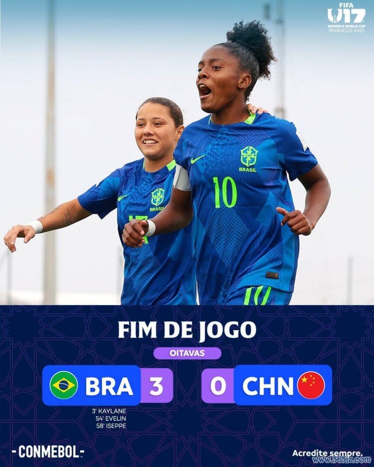 中国U17女足0-3不敌巴西U17女足无缘晋级。