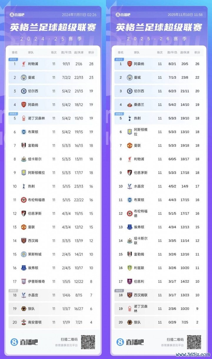 你的位置:欧协联直播 > 法甲联赛 > 英超11轮对比上赛季:榜首换队二三名不变,利物浦跌7名曼联升6名