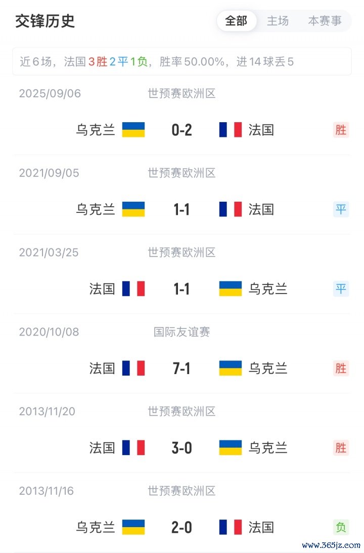 法国世初赛3胜1平积10分暂位D组第一;乌克兰2胜1平1负积7分暂位第二,近3轮不败。本场若法国驯顺乌克兰,就将提前一轮晋级寰宇杯。法国正赛对阵乌克兰已筹画4场不败(2胜2平)。