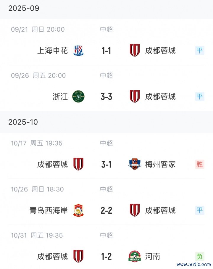 10月31日讯 中超第29轮,蓉城1-2遭河南逆转,剩1轮过时4分退出争冠。蓉城近5轮1胜3平1负仅拿6分。