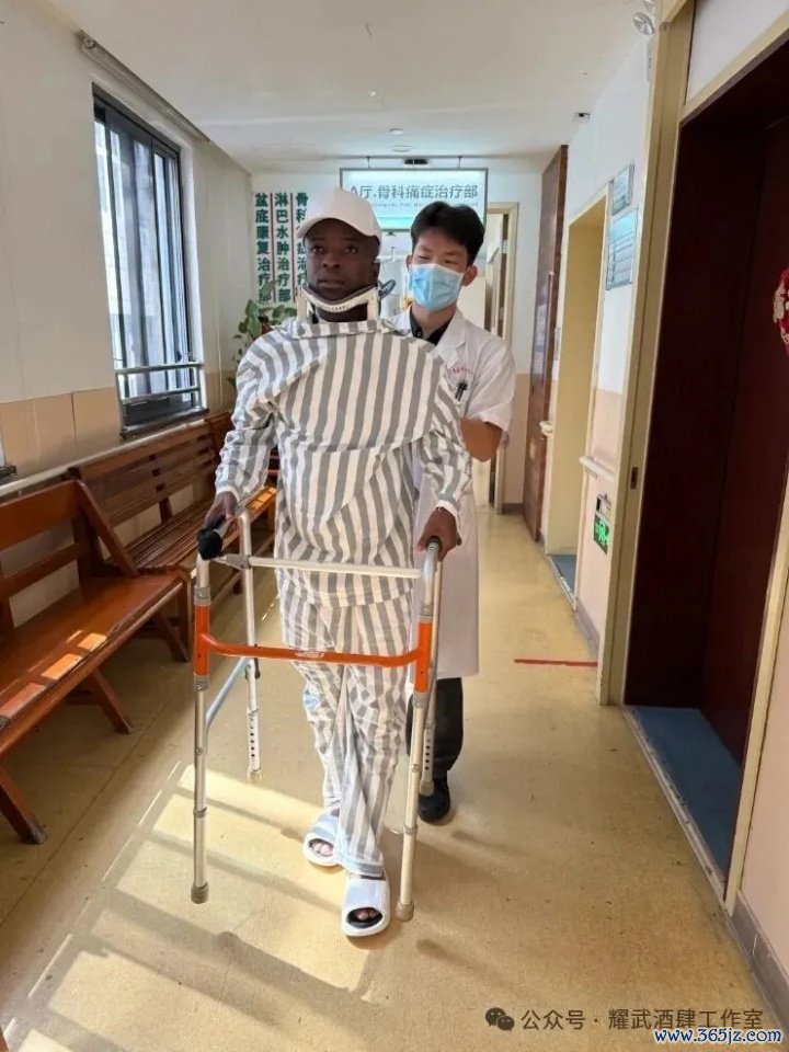 10月13日讯 据广西足球博主“耀武酒肆使命室”晒照,阿萨莫阿在助行器赞助下,不错下床行走。