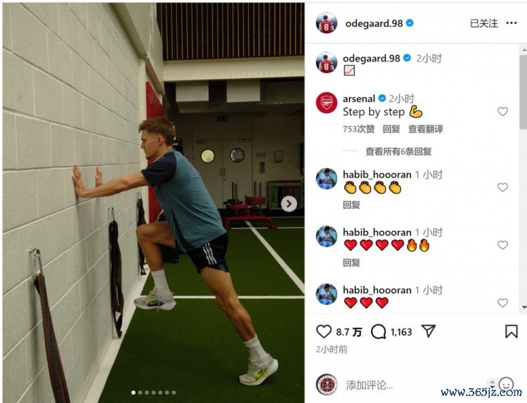 厄德高在10月4日对阵西汉姆的比赛中膝盖内侧副韧带受伤,他在酬酢媒体上晒出康复磨真金不怕火的相片,这位阿森纳中场正在致力规复,但愿尽快复出匡助球队。