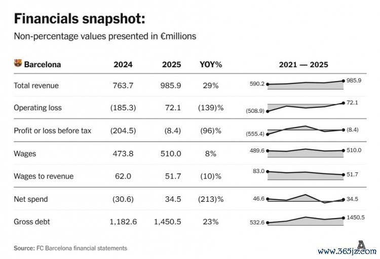 比年思理清巴萨财务气象近乎离奇乖癖,其复杂流程如同对战九头蛇——刚厘清一笔复杂走动,坐窝又冒出两笔新的。这家加泰罗尼亚朱门在10月公布24/25赛季财报时,宣称实现了“全处所经济复苏与运营恶果提高”。