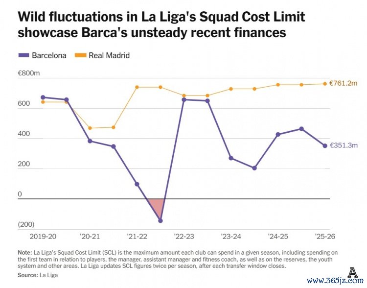 西甲球队成本上限的剧烈波动突显了巴萨近期财务气象不牢固