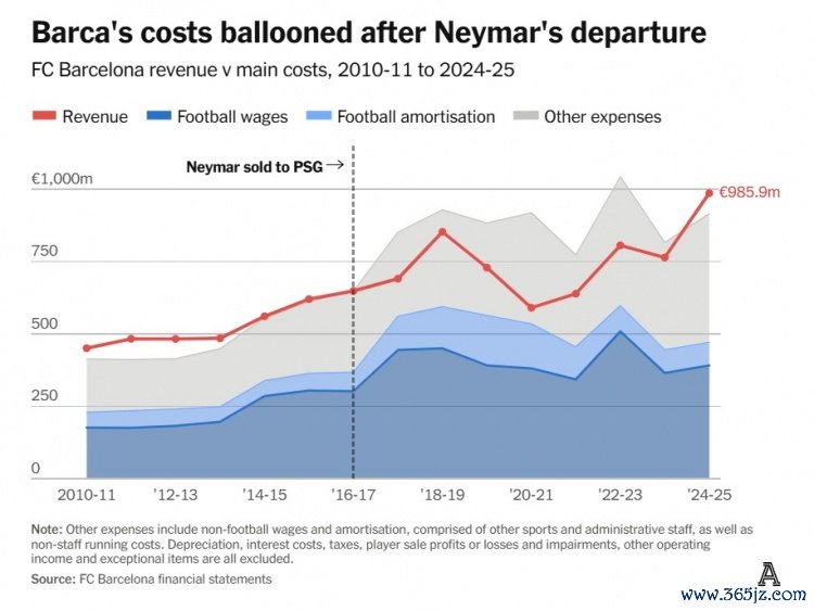 在意象巴萨这种级别俱乐部的其他运营成本前,每1欧元中就有81分被球员干系成本吞吃。而这些其他成本历来慷慨。俱乐部财务结构马上恶化。