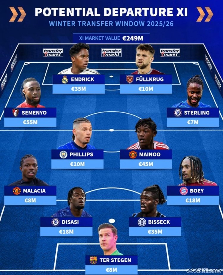 德转列冬窗潜在转会阵:总身价2.49亿欧元