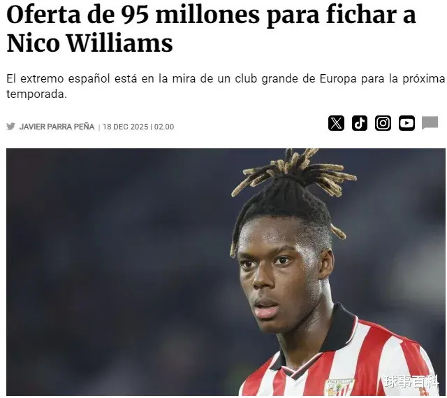 路易斯·迪亚斯的速率与纵深冲击如今属于拜仁,利物浦急需填补空缺。据西班牙媒体fichajes音讯炫耀,FSG(芬威体育集团)正准备向毕尔巴鄂竞技开出9500万欧元的报价,办法锁定23岁的西班牙王牌——尼科·威廉姆斯。
