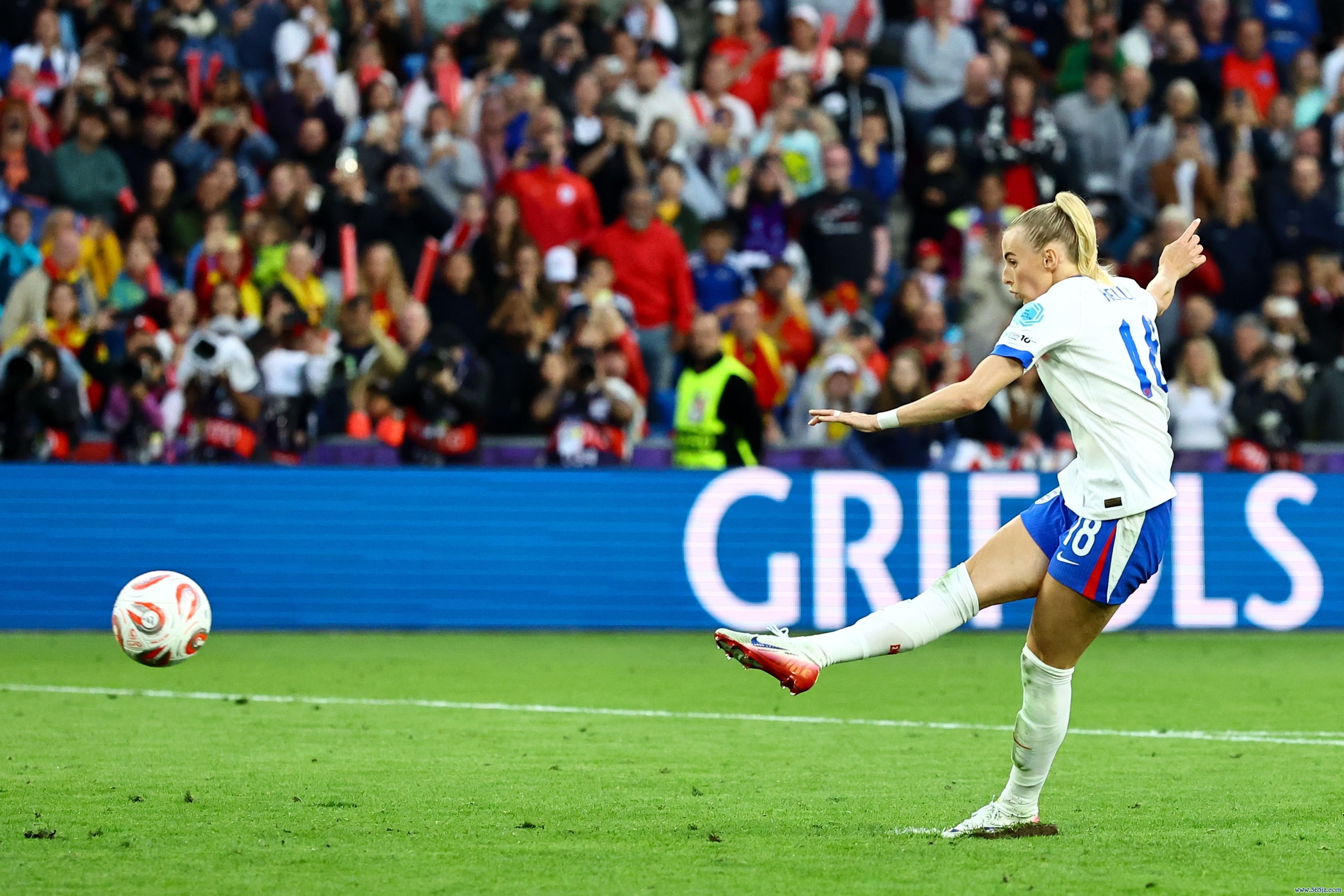 在不久之前遏抑的女足欧洲杯决赛中,英格兰女足点球大战打败西班牙女足,捧起冠军奖杯。