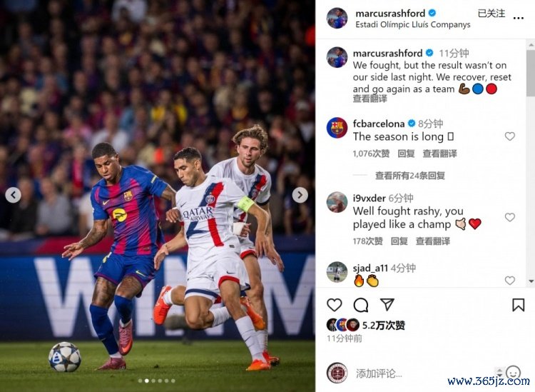 拉什福德社媒晒出比赛相片,并写说念:“咱们发奋斗争,但昨晚的比赛效果不如咱们所愿。”