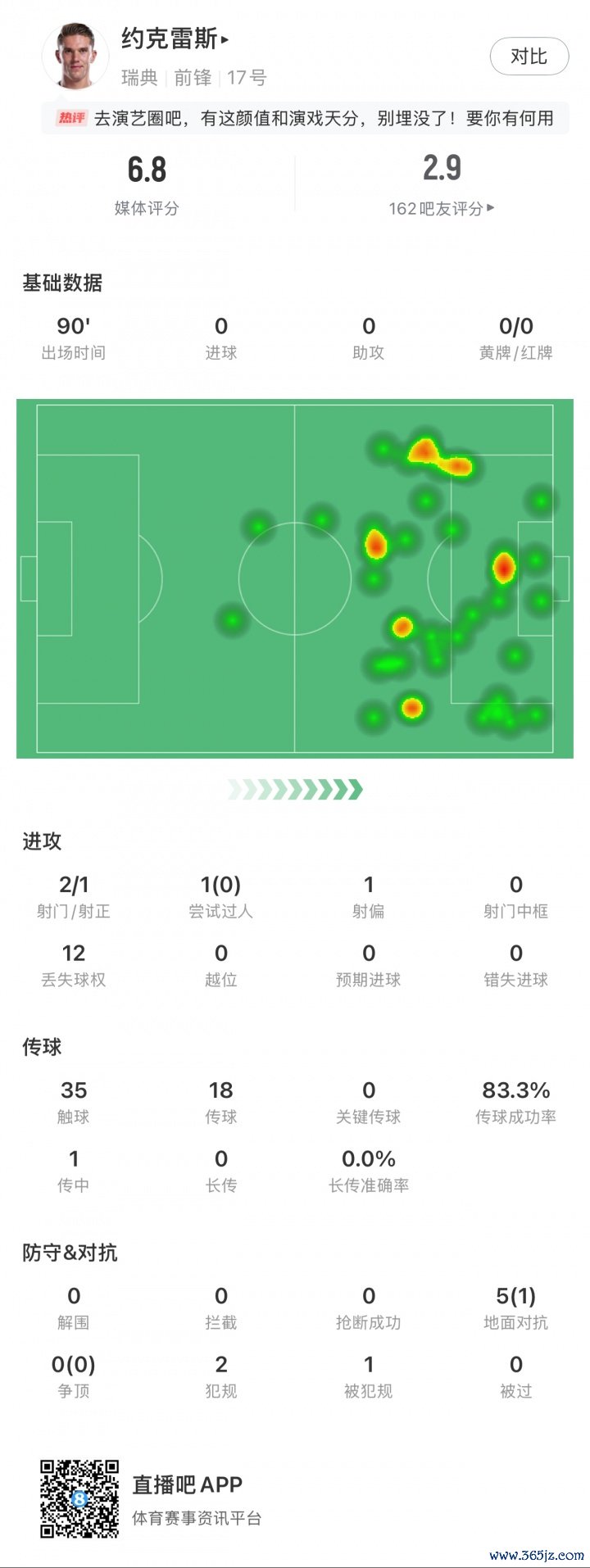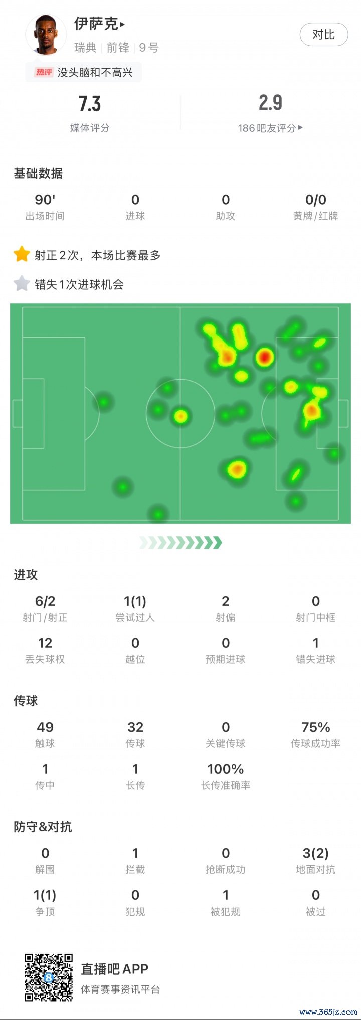 10月世初赛,瑞典先后在主场0-2不敌瑞士、0-1不敌科索沃,两场比赛伊萨克和约克雷斯均搭档双前卫,首发打满全场,两东谈主共计11次射门3次射正0进球,其中伊萨克7射2正、约克雷斯4射1正。