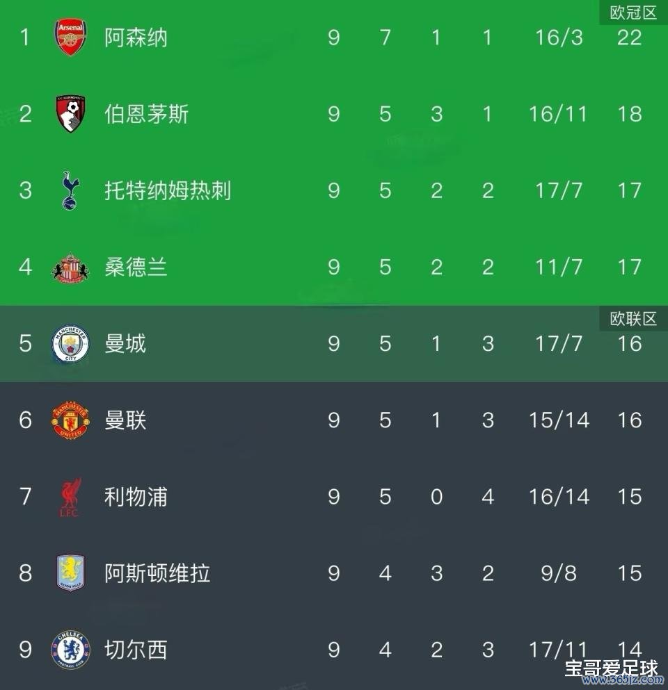 英超第9轮死心后,望望当今积分榜上的排行,有种隔世之感的嗅觉,英超大变天了!千大哥二阿森纳咫尺高居榜首遥遥开头,开头老敌手曼城、利物浦和曼联至少两个胜场;英超BIG6的其余5支球队热刺、曼城、曼联、利物浦和切尔西中只好热刺杀进了前四,但也足足过时阿森纳5分!夏窗卖光后防地的伯恩茅斯和升班马桑德兰齐进入了前四,这如故咱们老成的英超吗?