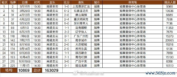 2025中甲联赛南通支云队现场不雅世东谈主数统计:共计163029东谈主次,场均10869东谈主。