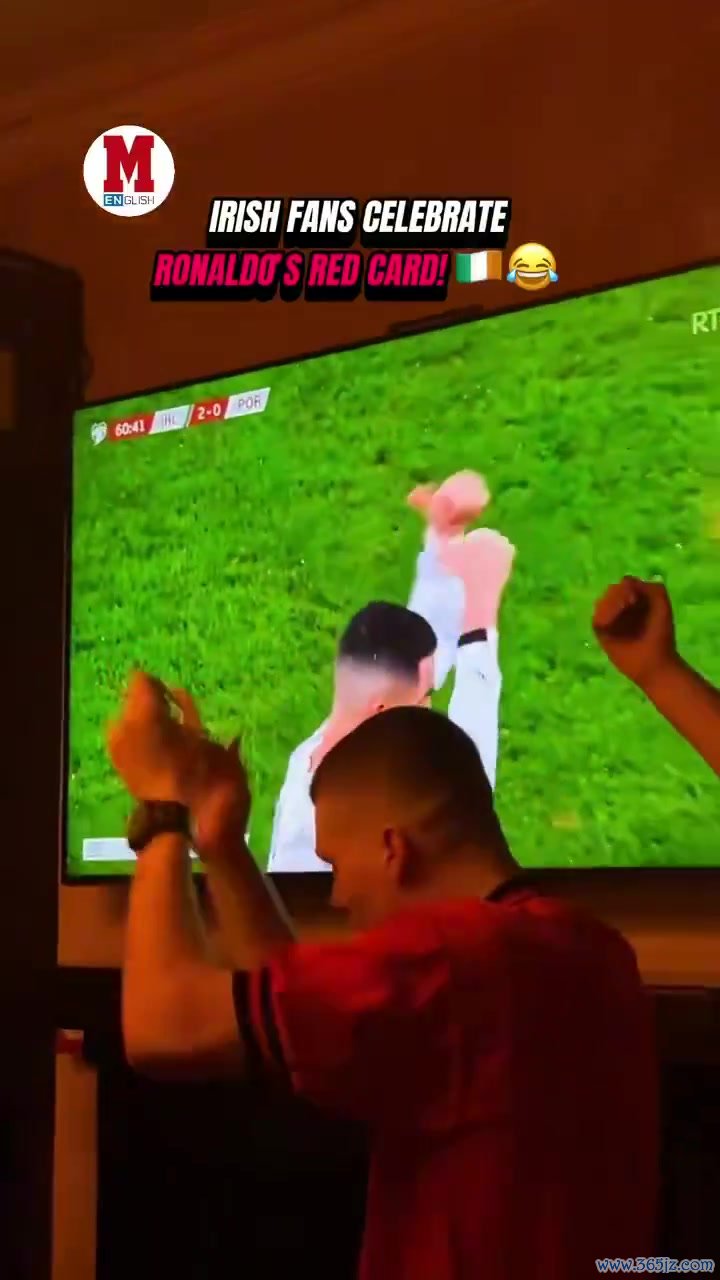 11月14日讯 《马卡报》发布一段视频,爱尔兰球迷在C罗被罚下后庆祝。